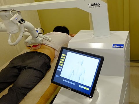 Emma has sensors that measure tendon and muscle stiffness and can calculate the optimal massage and track a patient's recovery over a course of treatments, according to the developers.